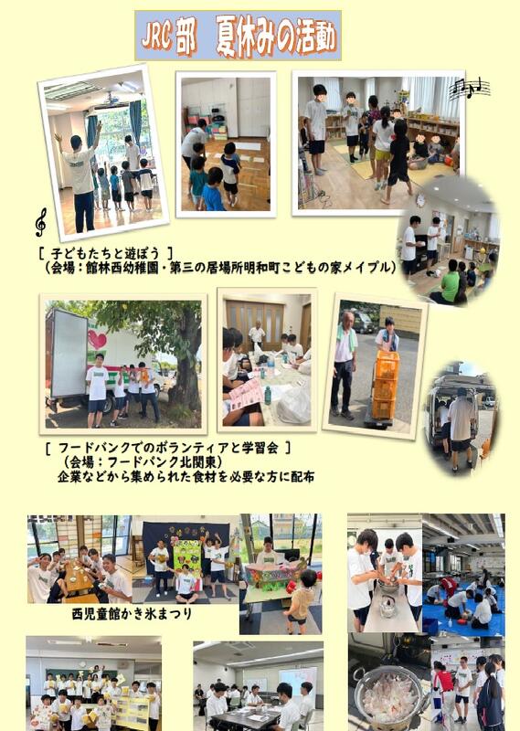 《通年の活動》 ◎子ども食堂(館林市西公民館 第3土曜日) NPO法人あかるい未来ネットの方と食料配布・昼食の配膳 ◎学習支援(館林市西公民館 第1・第3土曜日) 館林国際交流協会の方とボランティア ◎西児童館・こどもの家メイプルで子どもたちと過ごす ◎校内の清掃活動 |