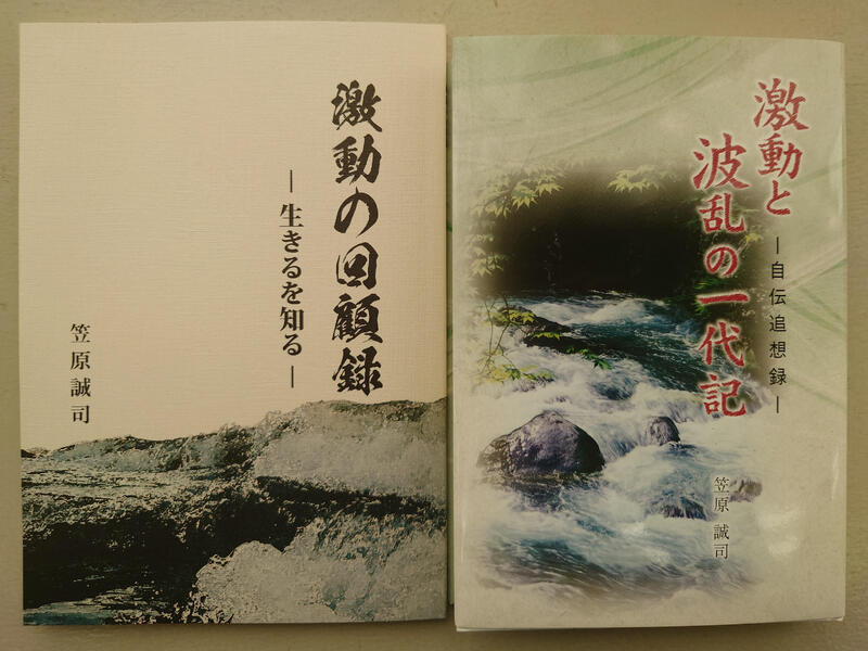 このたび、本校卒業生である笠原誠司様より、御著書『激動の回顧録ー生きるを知るー』及び『激動と波乱の一代記ー自伝追想録ー』を御寄贈いただきました。